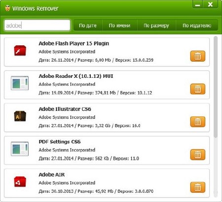 Windows Remover отличная программа для быстрого удаления ненужного софта, файлов и других программ и очистки компьютера. Не знаете как удалить программу с компьютера? Запустите программу WinRemover и удаляйте не нужные вам программы. Воспользуйтесь поиском, чтобы быстро найти программы, а так же сортируйте их по дате, имени, размеру и издателю. |